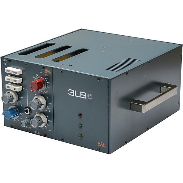 El rack BAE 3LB de 3 canales de la serie 500 puede alojar y alimentar el preamplificador 1073D de 3 ranuras de BAE o tres módulos independientes de la serie 500 de 1 ranura. El 3LB está fabricado en acero sólido y cableado a mano por el equipo de BAE en Los Ángeles, California.